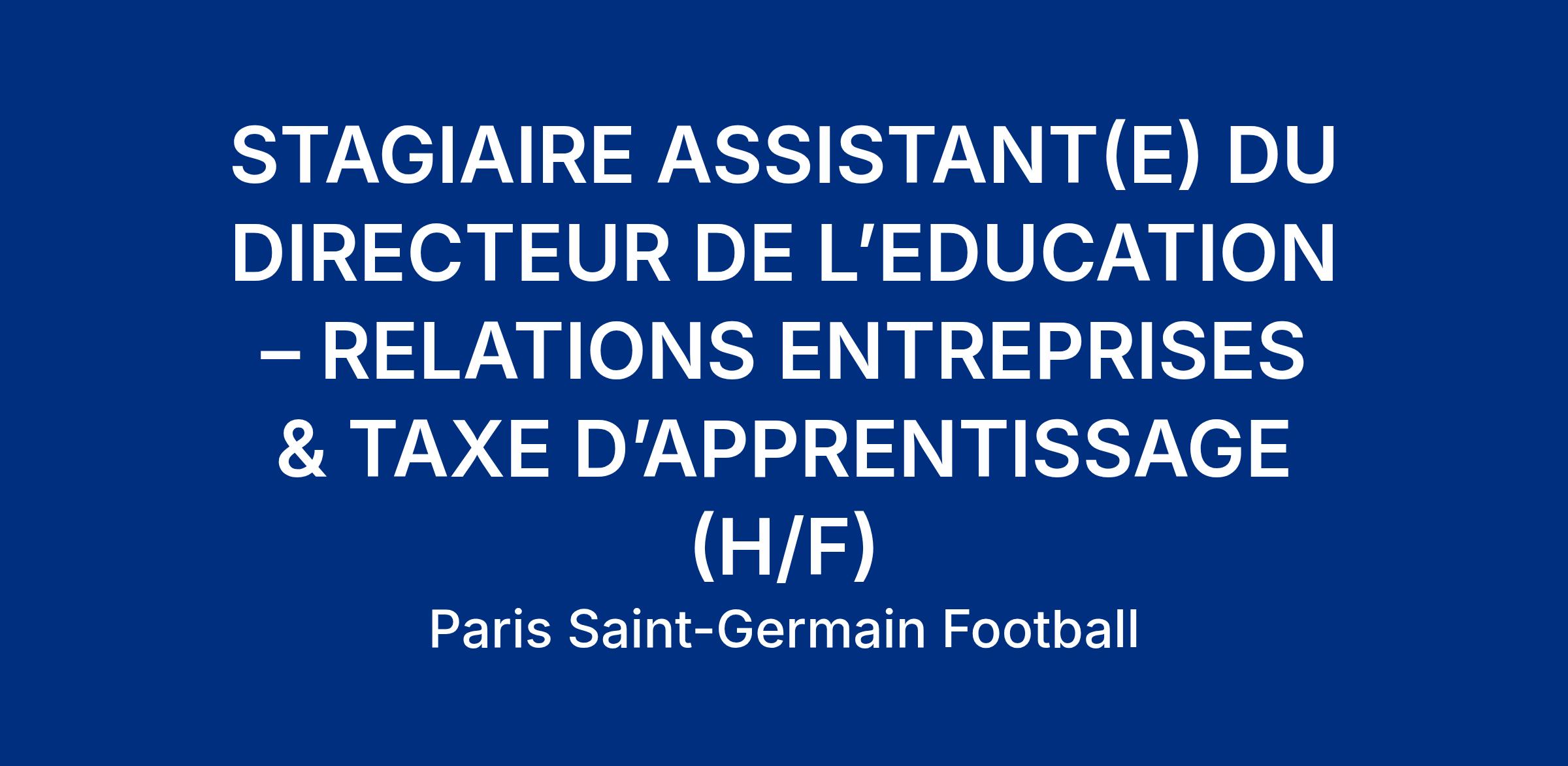 Le Paris Saint-Germain recherche pour son département ACADEMY un(e) Stagiaire Chargé(e) de Mission – Taxe d’Apprentissage (h/f), pour une durée de 6 mois temps plein, à pourvoir dès que possible en Mars.