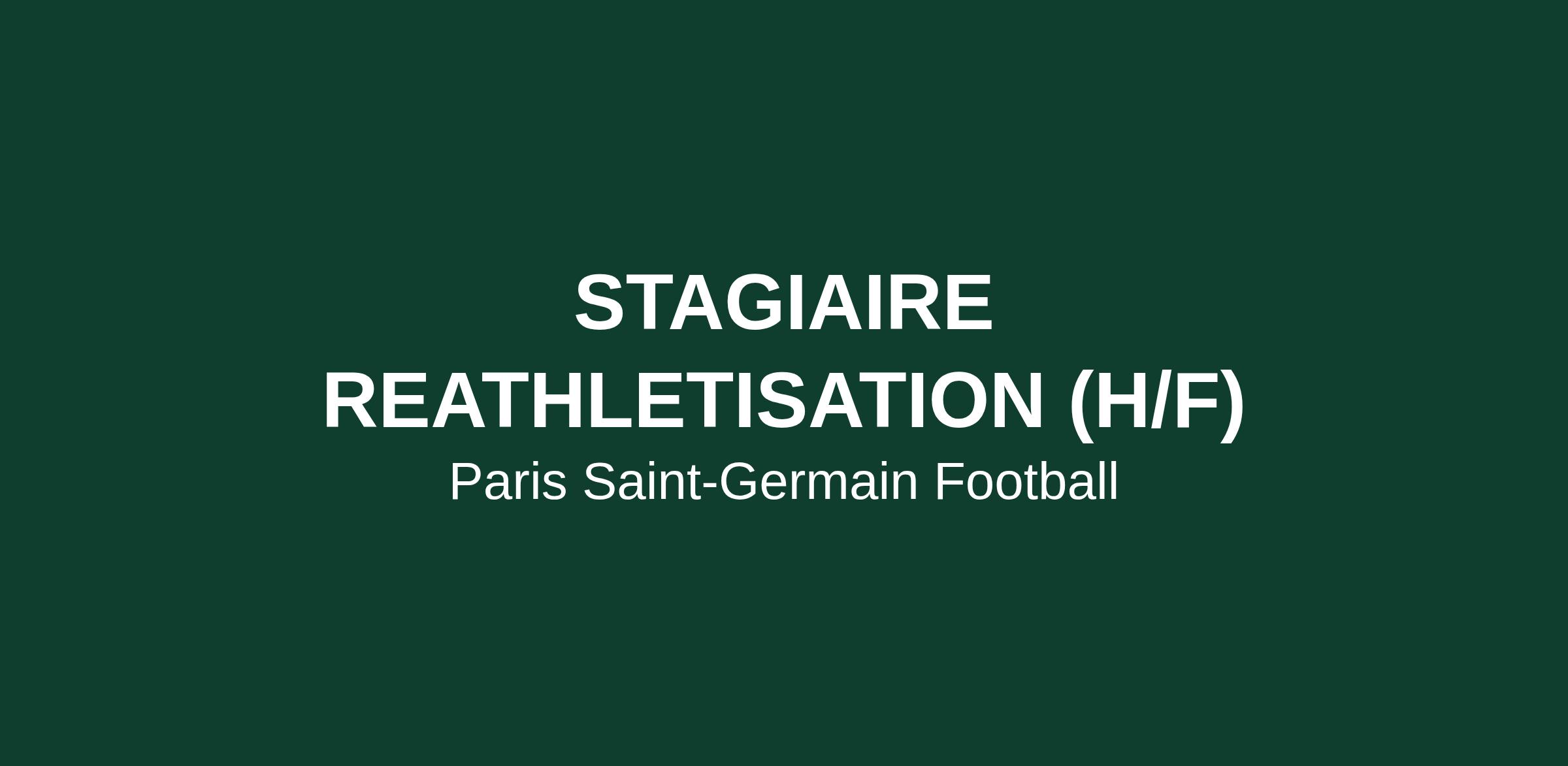 Le Paris Saint-Germain (PSG) recherche un(e) Stagiaire Réathlétiseur (H/F) pour la section centre de formation garçon et féminine pour la saison 2025-2026. Le stage à pourvoir débute en mars 2026 sur une durée de 6 mois à temps plein et est basé au Campus du PSG à Poissy.