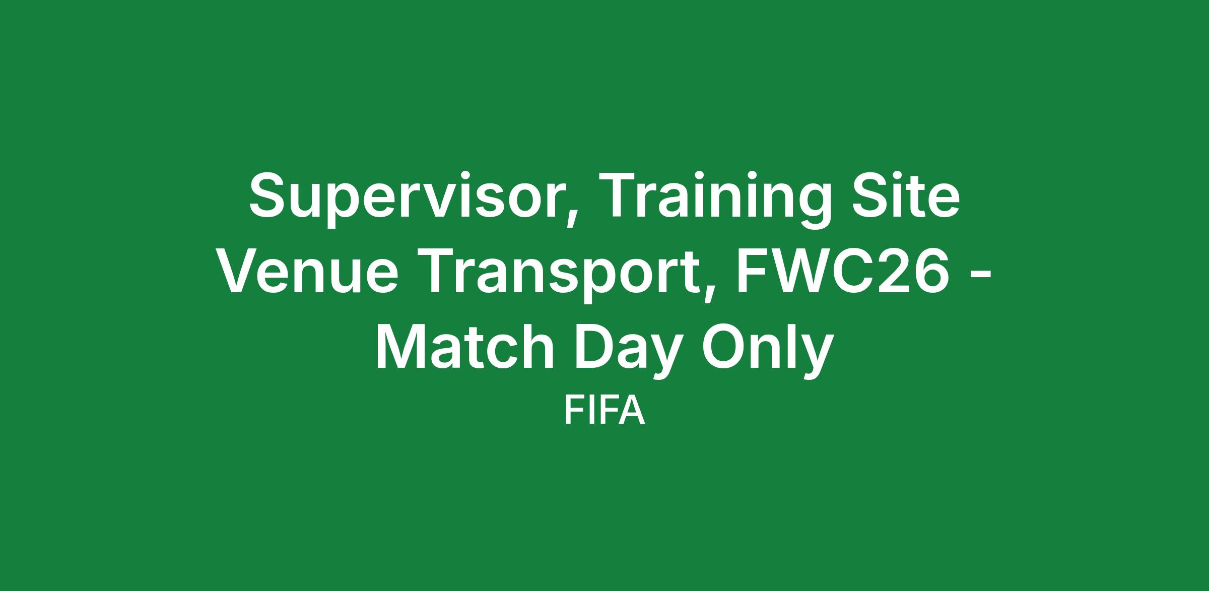 Supervisor, Training Site Venue Transport, FWC26 - Match Day Only