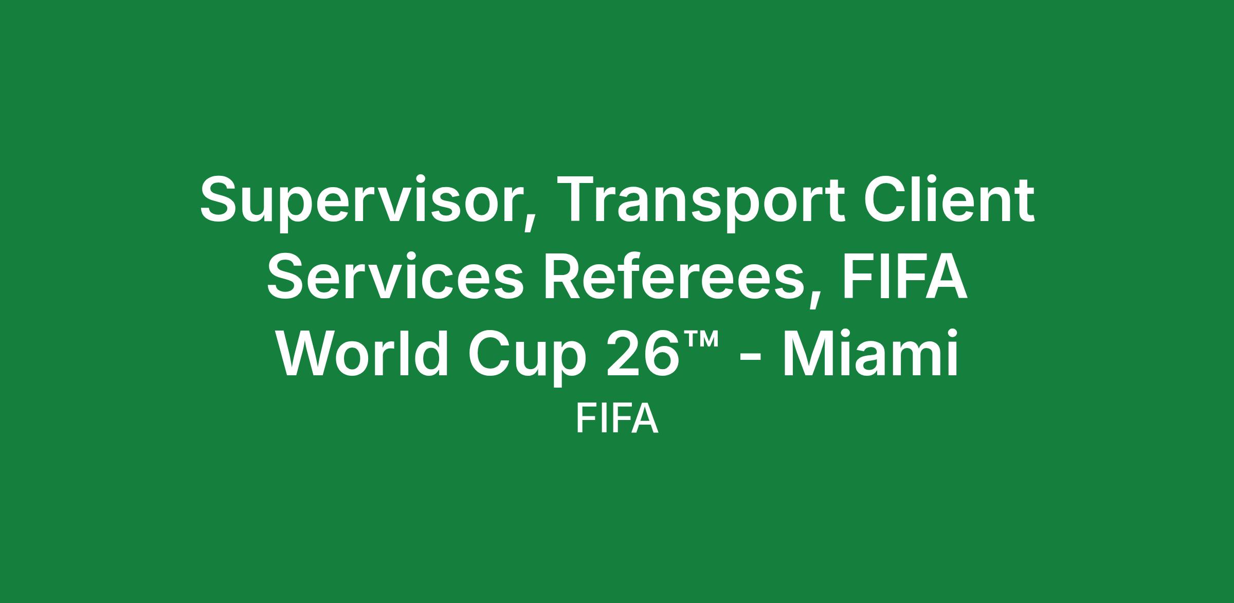 Supervisor, Transport Client Services Referees, FIFA World Cup 26™ - Miami