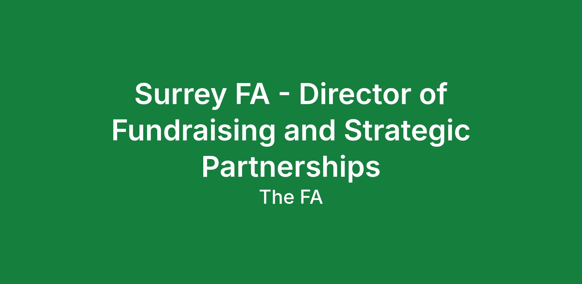 The Director of Fundraising & Strategic Partnerships will lead and grow sustainable income across multiple fundraising streams while developing high-value strategic partnerships. This income will advance Surrey FA's mission while influencing system-wide change in football provision and beyond.