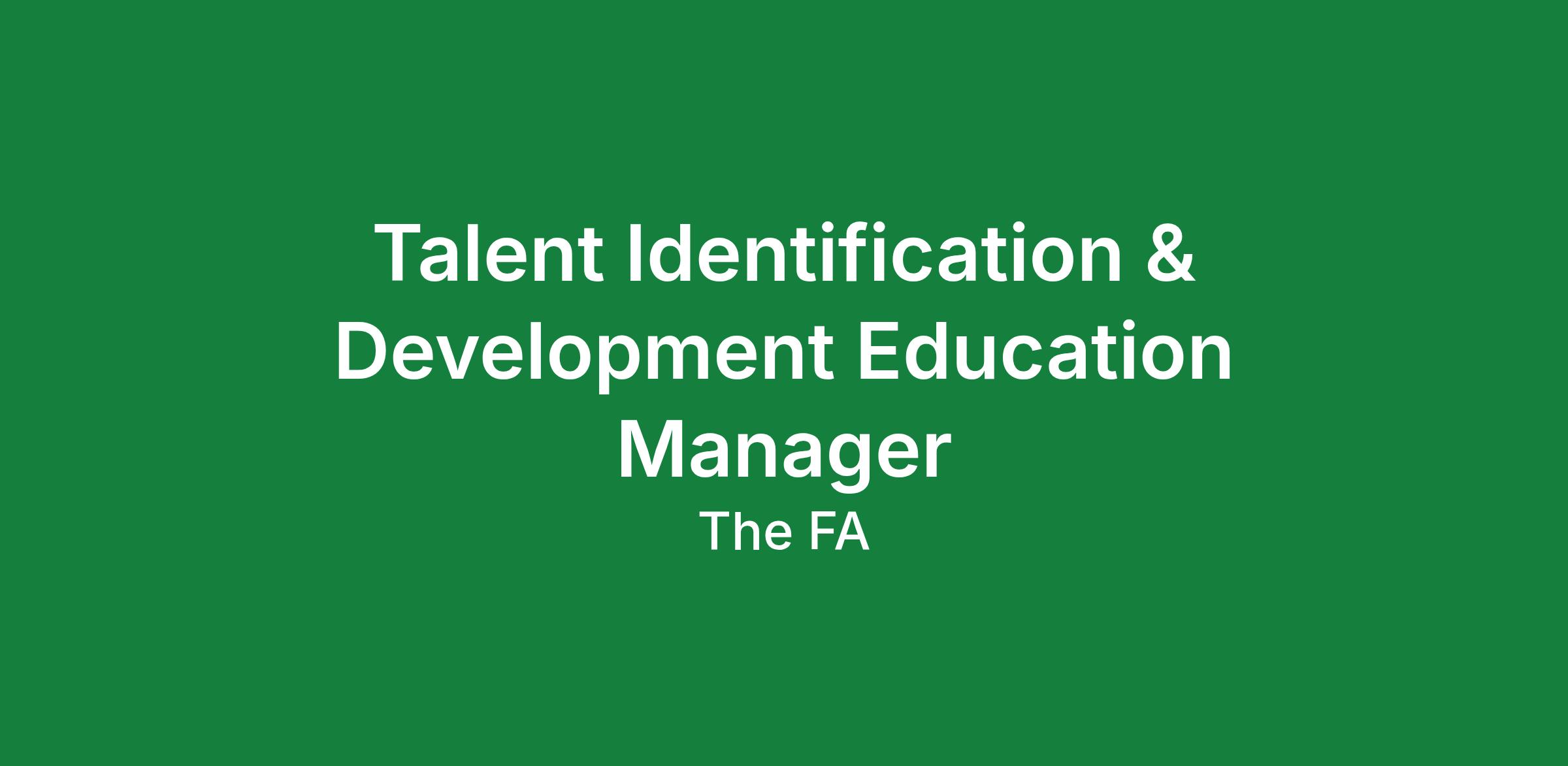 The Football Association is seeking an experienced Talent Identification professional to join our team as Talent Identification and Development Education Manager.