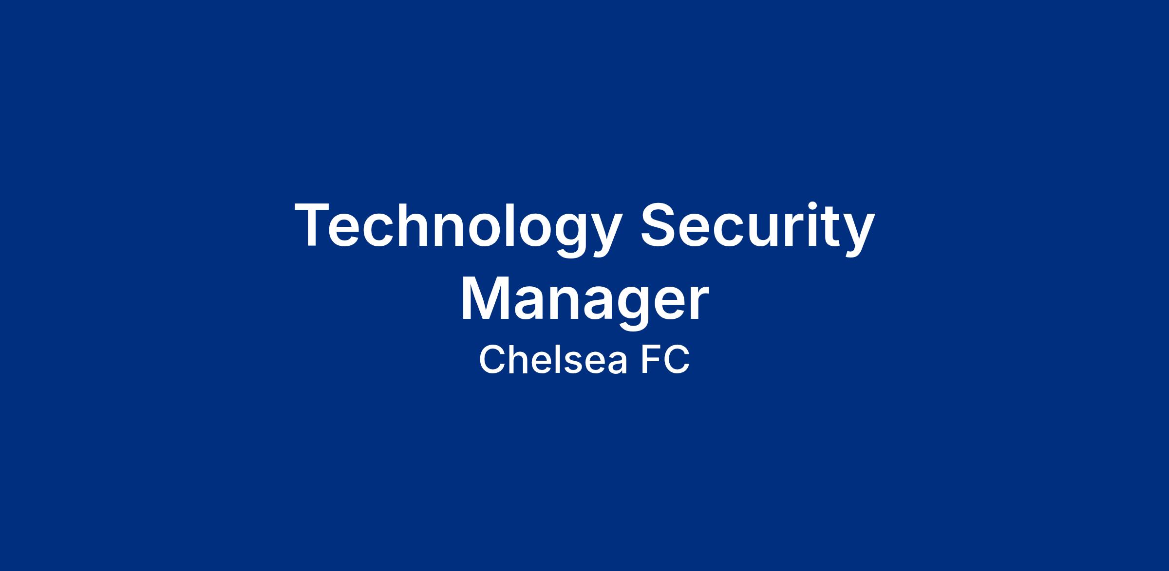 JOB TITLE Technology Security Manager DEPARTMENT: Technology LOCATION: Stamford Bridge (London) with occasional travel to Cobham (Surrey). CONTRACT: Permanent. JOB FUNCTION: This position is responsible for leading the strategic and operational directio...