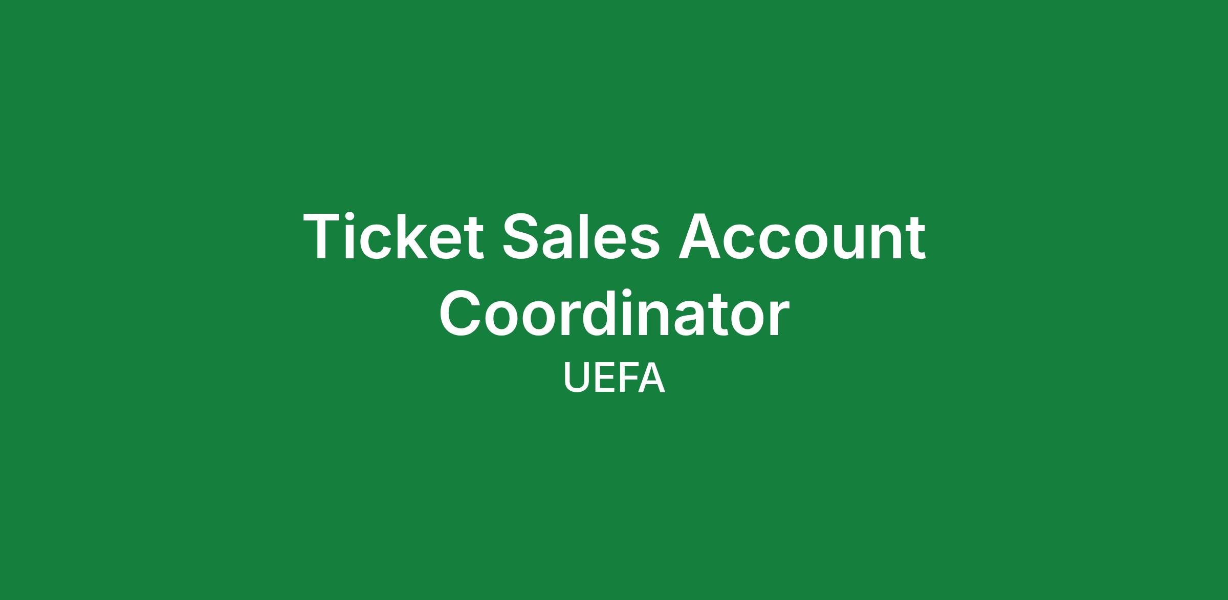 The Ticket Sales Account Coordinator is responsible for coordinating ticket sales for various client groups (including sponsors, broadcasters, UEFA member associations and clubs) for UEFA EURO 2028, UEFA club competition finals and the UEFA Nations League finals. The role requires strong administrative, communication and coordination skills.
