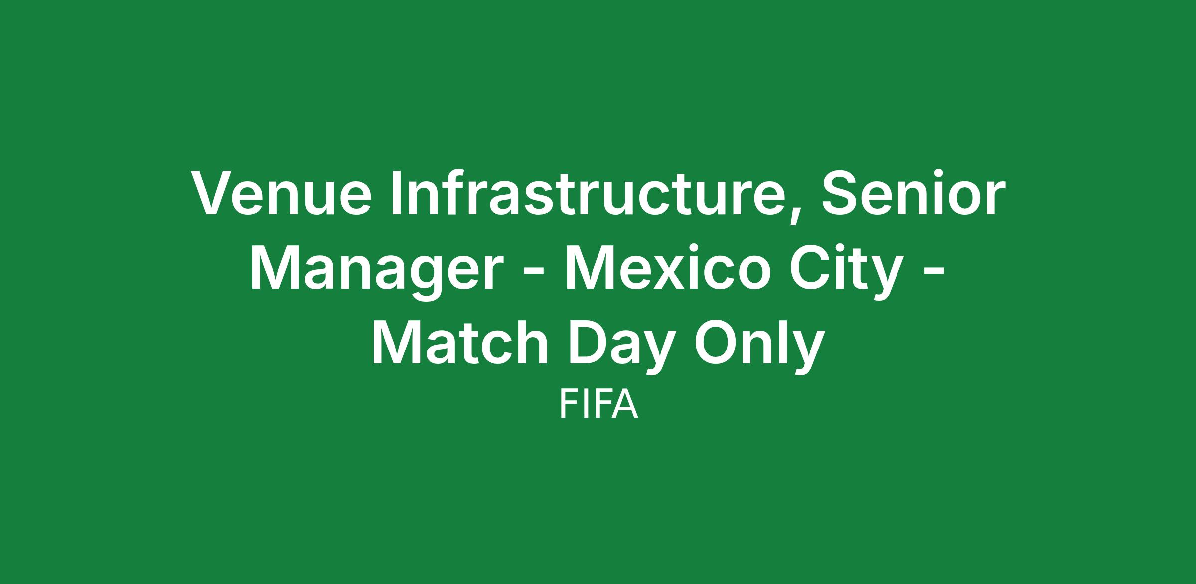 Venue Infrastructure, Senior Manager - Mexico City - Match Day Only